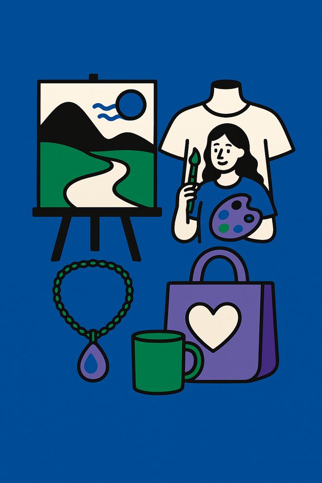 We are a family-run creative business based in San José, California, blending art, passion, and social impact. Our collections include hand-drawn landscapes, wearable art, home décor, and one-of-a-kind handmade jewelry, as well as printed designs featuring José’s artwork and seasonal themes. We also offer customized t-shirts, mugs, and tote bags.